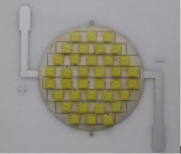 白光芯片模组FP36-C7是晶科电子研发的新型芯片级封装技术,国内首家实现高良率、高光效的量产白光芯片。产品功率为16W,电压范围33.0-36.0V,电流500mA,CCT达到5000K,Ra>