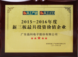 据了解,晶科电子于2016年3月14日取得“全国中小企业股份转让系统”同意挂牌函并于2016年6月16日在北京“全国中小企业股转系统”正式挂牌。截止至2016 年 6 月,晶科电子以自身技术创新和运营管理实力,荣获了“2015-2016 年度新三板最具投资价值企业奖”;“中国 LED封装企业国际竞争力 TOP10”;“CITE 创新产品与应用奖 ——侧入式背光器件 7020” 以及公司新推出的产品“COB+模组器件”荣获 “优秀技术奖” 等多项奖励。