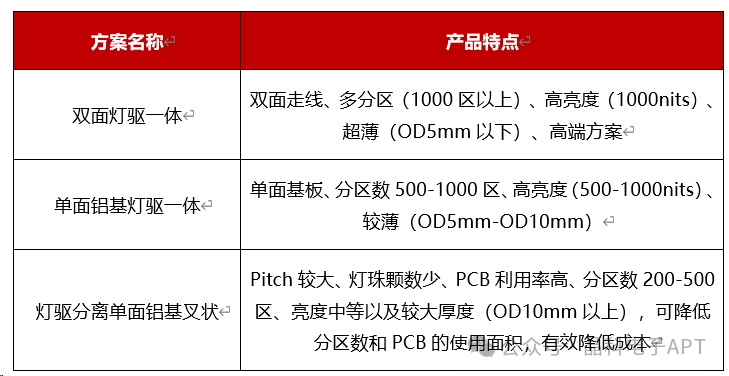 作为国内领先融合【LED+】技术的智能视觉产品及系统解决方案提供商,晶科电子在Mini LED背光方面拥有丰富的经验和技术储备,建立了多条Mini COB产线,可满足3万台电视的产能需求。晶科电子通过工艺的提升,COB直通率超95%,开发了多款产品方案,包括:双面灯驱一体、单面铝基灯驱一体和灯驱分离单面铝基鱼叉状等涵盖高端、中端及普通的电视、显示器和车载显示的方案。