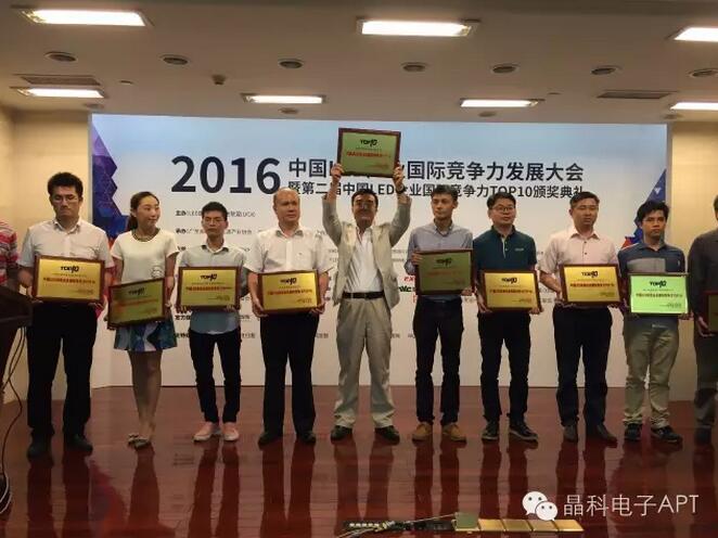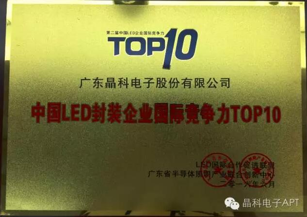 2016年6月8日在广州燕岭大厦举办的“2016中国LED产业国际竞争力发展大会暨第二届中国LED企业国际竞争力TOP10颁奖典礼”的活动中,晶科电子凭借自身的技术优势和良好的产品质量,荣获“中国LED封装企业国际竞争力TOP10”奖项,得到业界的一致好评,对晶科电子今年来所取得成绩的肯定。进入今年以来,随着市场需求的全面提升,众多LED企业均反映业绩颇佳,作为在LED照明及背光领域耕耘已久的晶科电子也是取得了骄人成绩,业绩呈喷发式增长。